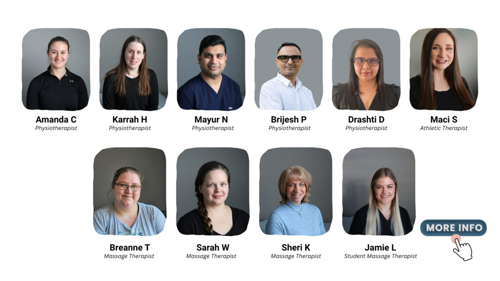 The clinic family consists of physiotherapists, massage therapists and several support staff members who combined total over 70 years experience.